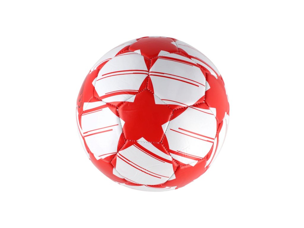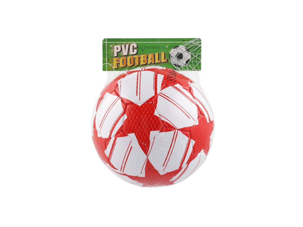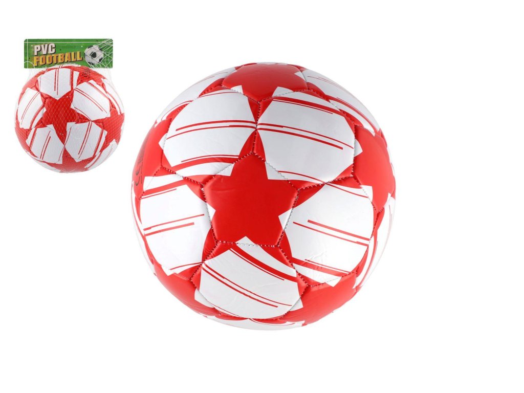 Míč fotbalový nafouknutý šitý 23cm červenobílý v síťce