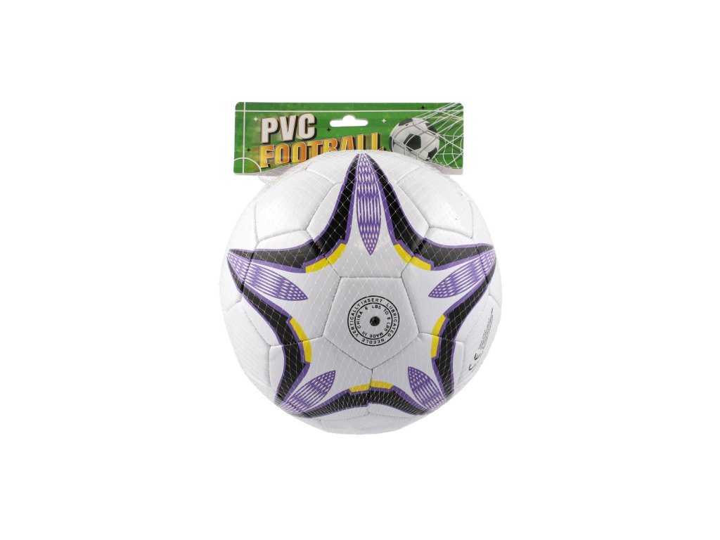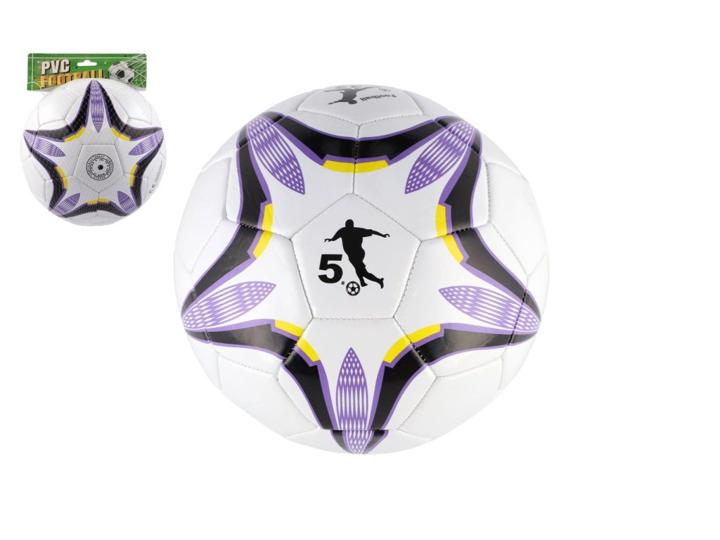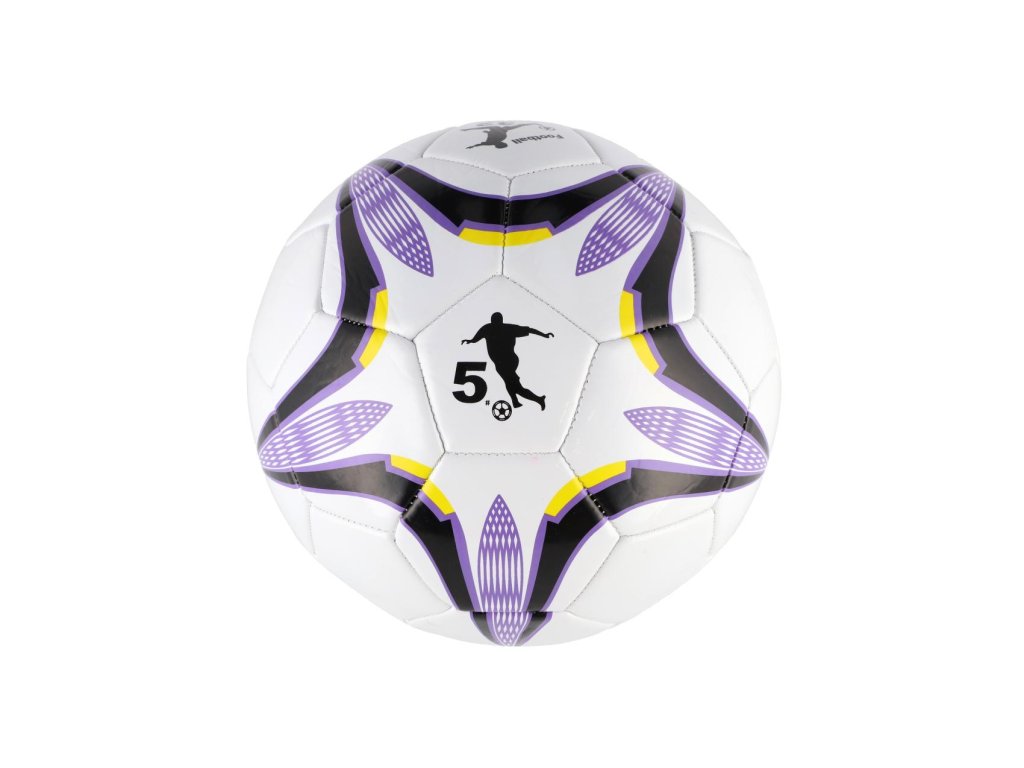 Míč fotbalový nafouknutý šitý 23cm fialovobílý v síťce