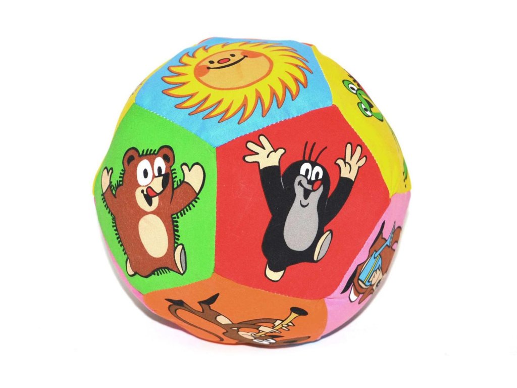 Textilní míč je opravdu báječný - po celé ploše jsou jednotlivě umístěny barevné obrázky s Krtečkem a jeho kamarády. Míček je určený už pro nejmenší miminka, které budou ze začátku potřebovat asistenci maminky, ale jak se naučí dítko sedět a pořádně mířit, to bude teprve zábava. Míček je v plastové taštičce.Rozměr míčku: 15 cm