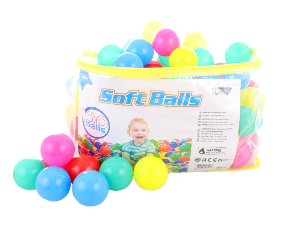 Plastové míčky 6 cm - 100ks. Baleno v plastovém pouzdře na zip, ve kterém je možné míčky uchovávat. Rozměry balení cca 35 x 22 x 22 cm. Věk 6m+Doplňkové parametry