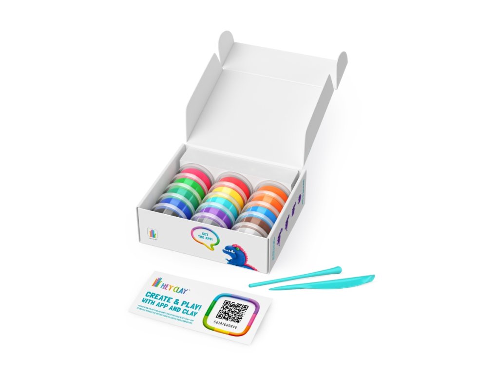 Z modelovací hmoty HEY CLAY si děti mohou vytvořit nepřeberné množství různých postaviček, zvířátek nebo oblíbených hrdinů. Po vymodelování je důležité nechat modely na vzduchu dostatečně zatvrdnout a tím okamžikem se mohou stát součástí dalších her a zábavy. Lze si tak jednoduše vytvořit vlastní figurky a postavičky, nebo schovat Hay Clay opět do kelímku pro další tvorbu. S mobilní aplikací Hey Clay (iOS, Android), kterou si zdarma stáhnete, a která nabídne dětem další možnosti rozvíjení fantazie, barev a kouzlení s vytvářením nových postaviček – kód v hodnotě 4,99USD pro otevření aplikace, najdete v každém balení Sada Hey Clay obsahuje 18 nádobek s měkkou, jemnou a voňavou modelínou a přístupový kód do aplikace pro zakoupenou řadu. Barvy nacházející se v balení Vám umožní vytvořit 6 postaviček. Věk 3+Doplňkové parametry
