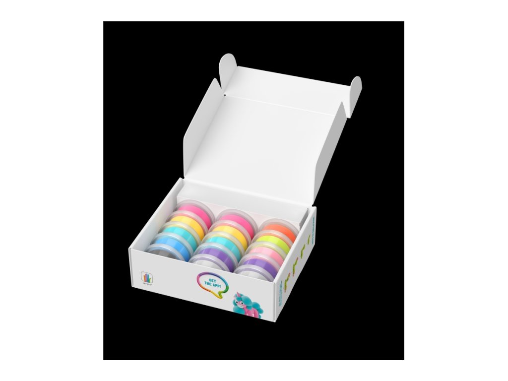 Sada Hey Clay obsahuje 15 nádob s měkkou a jemnou hmotou, dva nástroje pro usnadnění modelování a přístupový kód do aplikace pro zakoupenou sérii postav. Barvy jsou uvedeny na obalu a umožňují vytvořit ze sady všech 6 postav. Věk 3+Doplňkové parametry