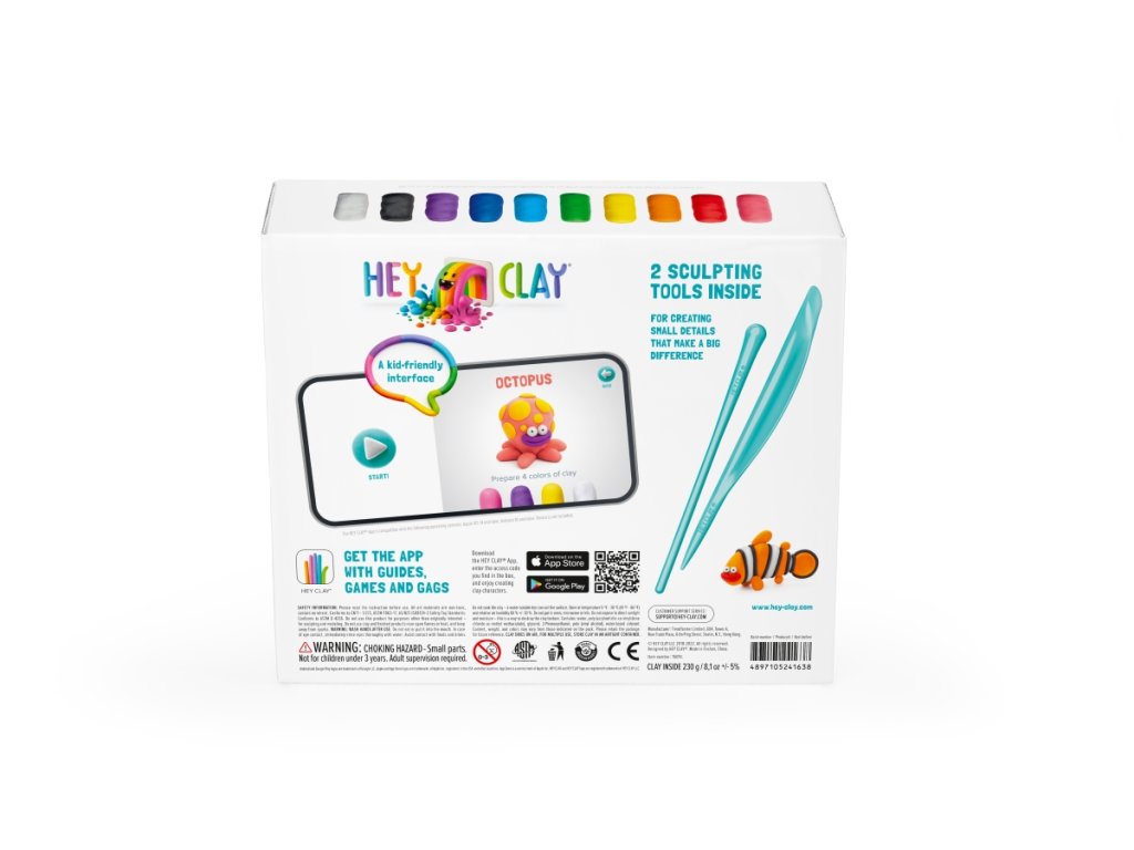 Sada obsahuje 18 nádob s měkkou, kreativní hmotou a přístupový kód do aplikace pro zakoupené znakové řady. Barvy zobrazené na obalu umožňují vytvořit všech 6 postav ze sady Ocean (žralok, úhoř, rejnok, klaun, chobotnice, skalára). Část hmoty zůstává pro opětovné použití, takže můžete realizovat svůj vlastní kreativní nápad. Hmota uschne na vzduchu do 24 hodin. Věk 3+Doplňkové parametry