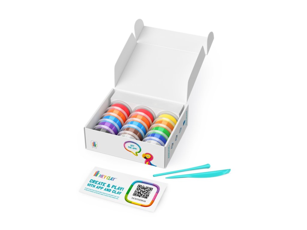 Z modelovací hmoty HEY CLAY si děti mohou vytvořit nepřeberné množství různých postaviček, zvířátek nebo oblíbených hrdinů. Po vymodelování je důležité nechat modely na vzduchu dostatečně zatvrdnout a tím okamžikem se mohou stát součástí dalších her a zábavy. Lze si tak jednoduše vytvořit vlastní figurky a postavičky, nebo schovat Hay Clay opět do kelímku pro další tvorbu. S mobilní aplikací Hey Clay (iOS, Android), kterou si zdarma stáhnete, a která nabídne dětem další možnosti rozvíjení fantazie, barev a kouzlení s vytvářením nových postaviček – kód v hodnotě 4,99USD pro otevření aplikace, najdete v každém balení Sada Hey Clay obsahuje 18 nádobek s měkkou, jemnou a voňavou modelínou a přístupový kód do aplikace pro zakoupenou řadu. Barvy nacházející se v balení Vám umožní vytvořit 6 postaviček. Věk 3+Doplňkové parametry
