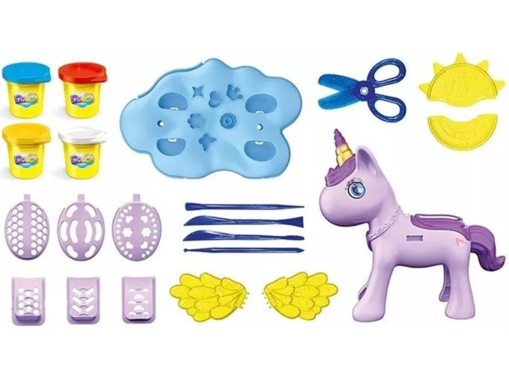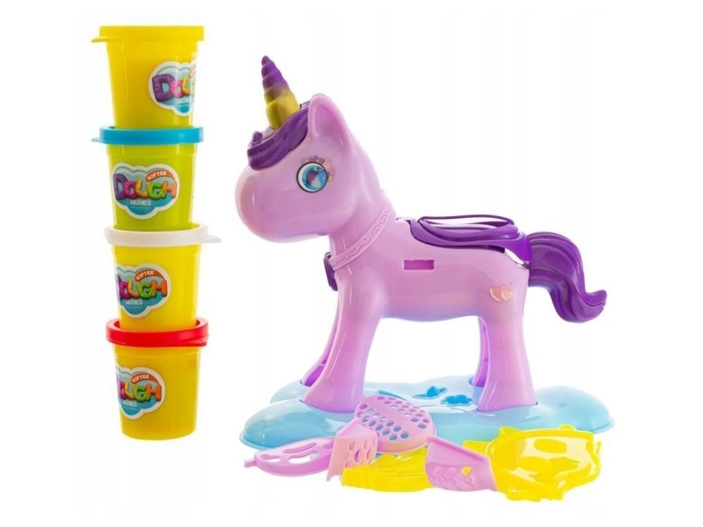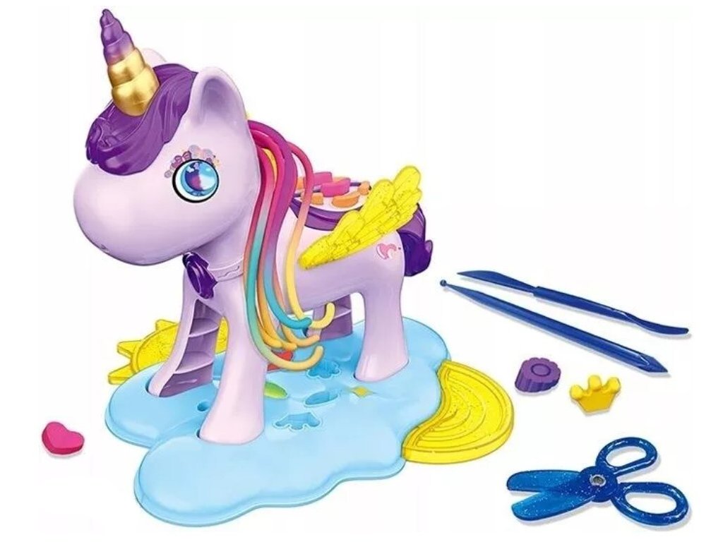 Jednorožec s plastickou hmotou.Perfektní hračka pro vaše dítě! Skvělá zábava a vzrušující hra poskytne mnoho hodin skvělého humoru. Podpoří rozvoj fantazie vašeho dítěte a poskytne spoustu zábavy s platsickou hmotou příjemnou na dotek.