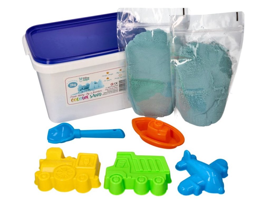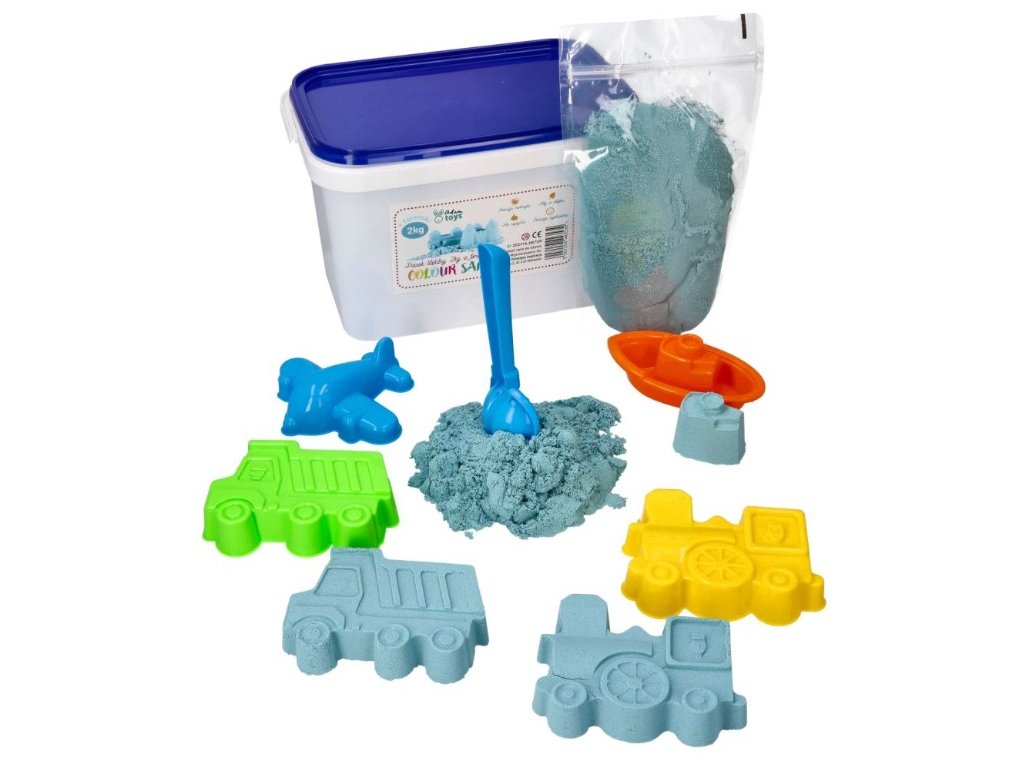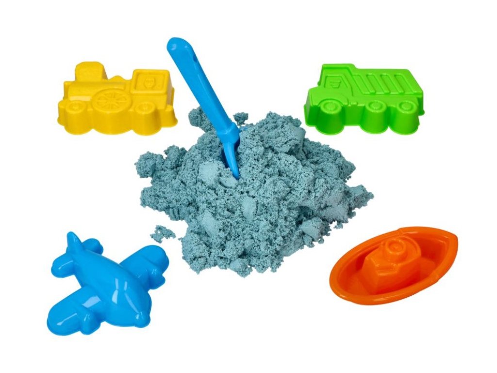 Kinetický písek - modrý - 2kg + formičky dopravní prostředky zdarma