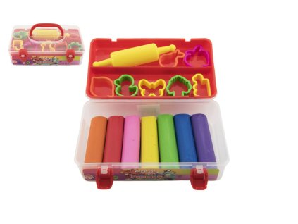 Modelína/Plastelína NARA 550g 7 ks s vykrajovátky 7ks s válečkem v plastovém boxu 20x12x7cm