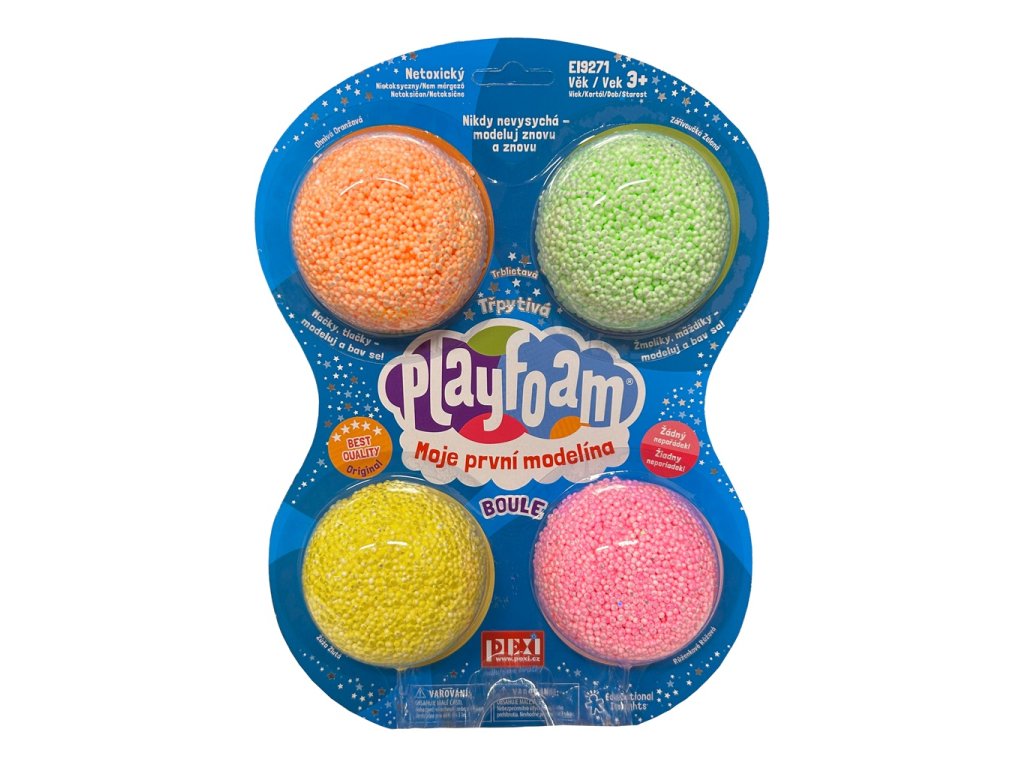 Modelína, která nešpiní, vhodná pro děti od 3 let do 10 letPlayFoam® Boule 4pack obsahuje 4 barvy se třpytkami, které se blyští na světle