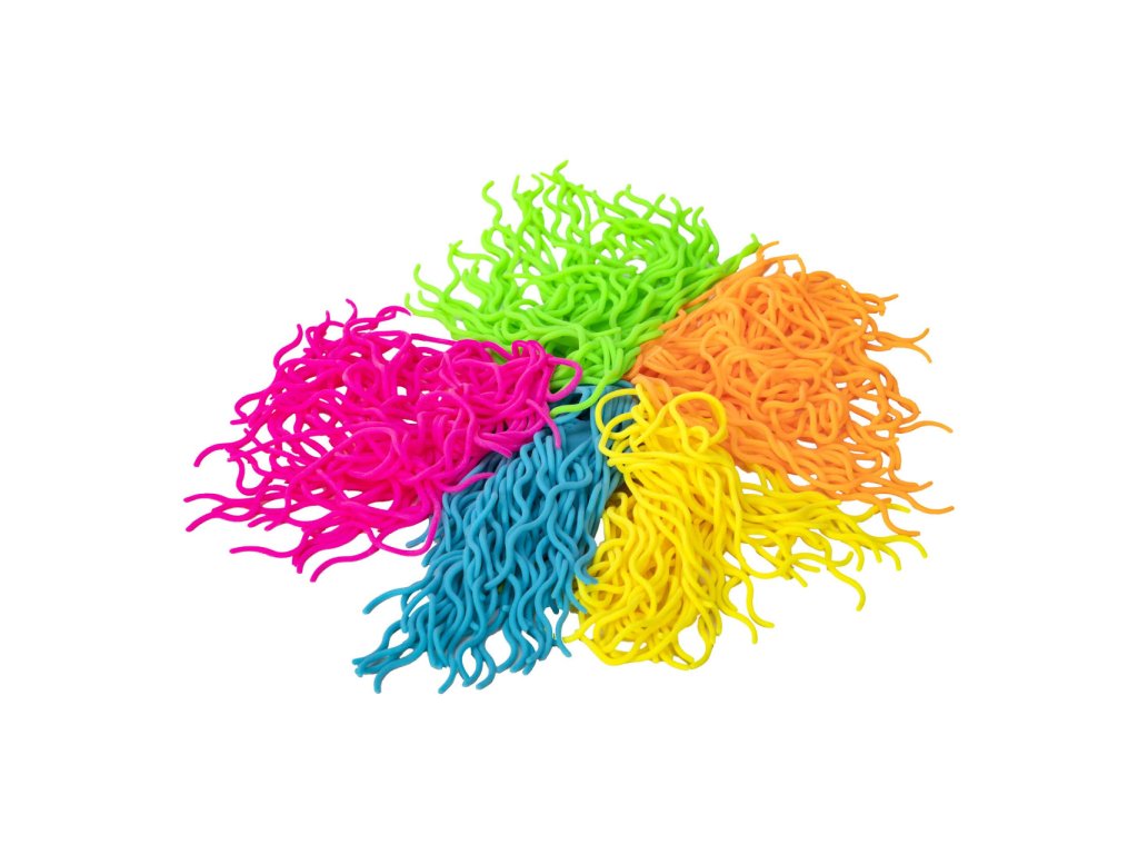 Natahovací nudle naplňují zábavu při hraní si s jídlem...bez nepořádku. Můžete je mačkat, natahovat, zauzlovat tak, jak se Vám líbí. Nudle jsou jasně zbarvené v 5 fluorescenčních tónech a nabízejí jedinečný zážitek ze smyslové hry, který vytváří spoustu nekonečné zábavy.