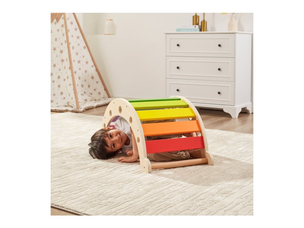 Dřevěný lezecký oblouk pro nejmenší děti. Rozměry 75x39,5x35 cm. Rozměry balení 76x39x8 cm. Maximální nosnost 50kg. Věk 12m+Doplňkové parametry