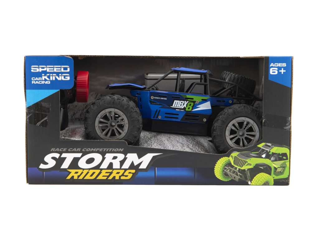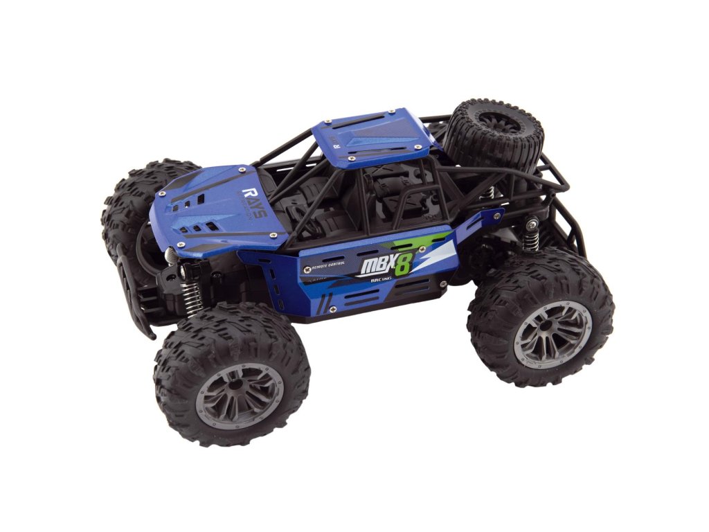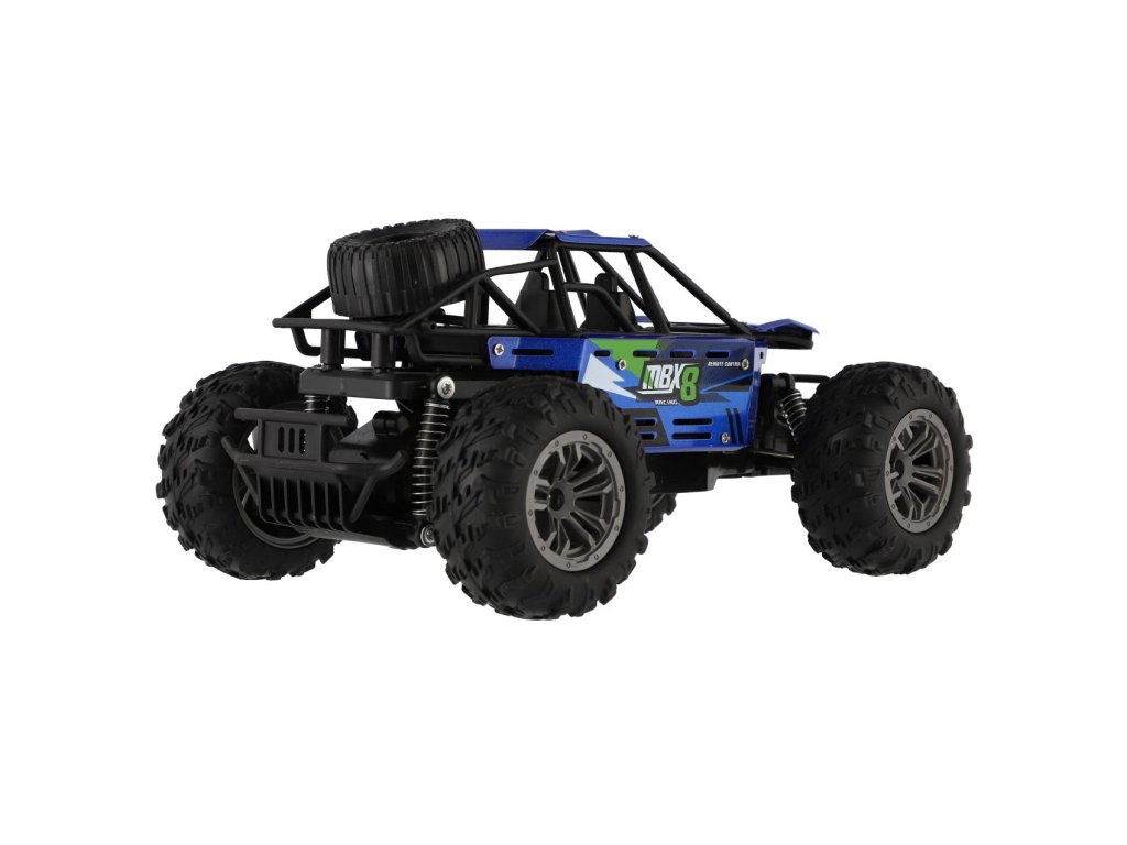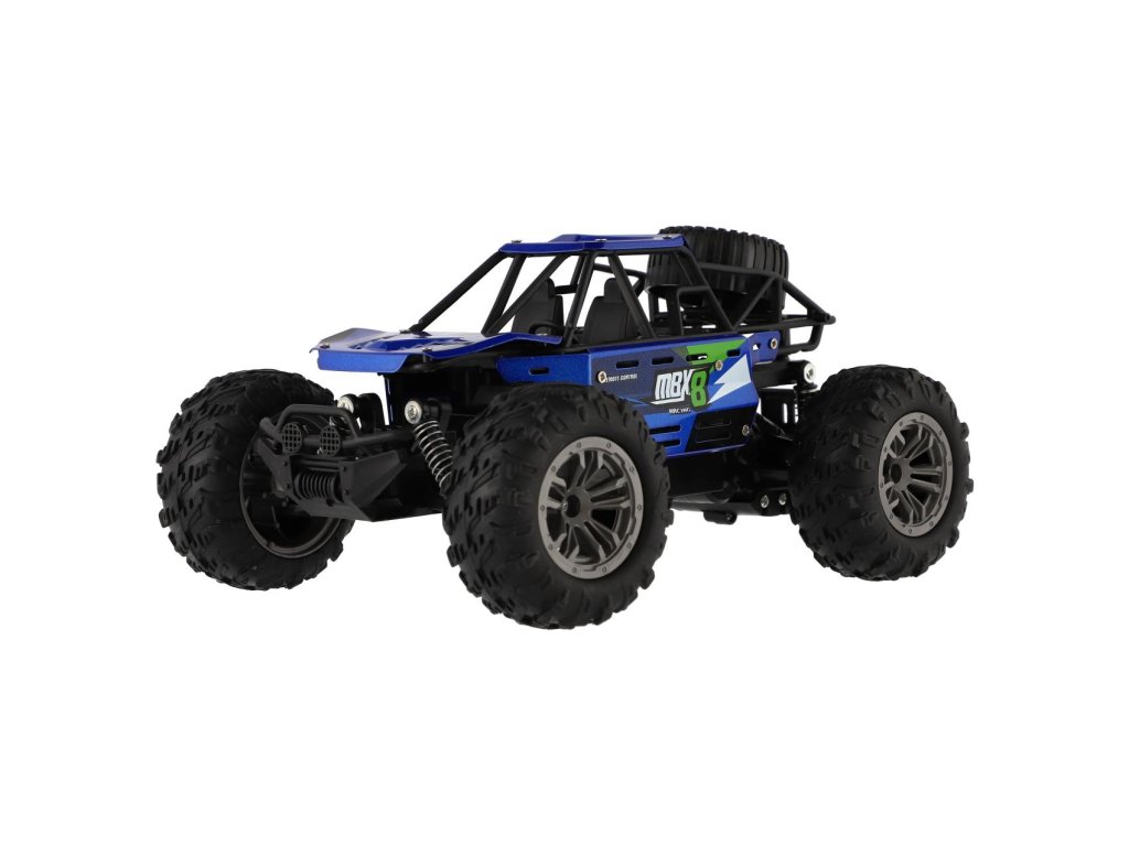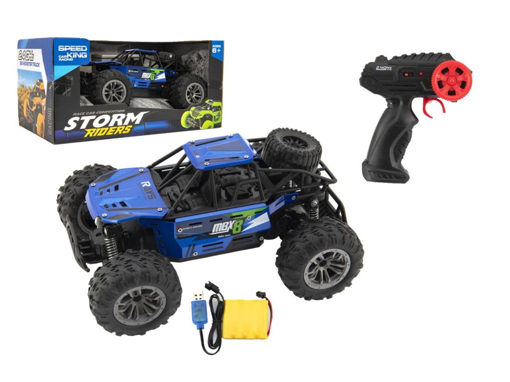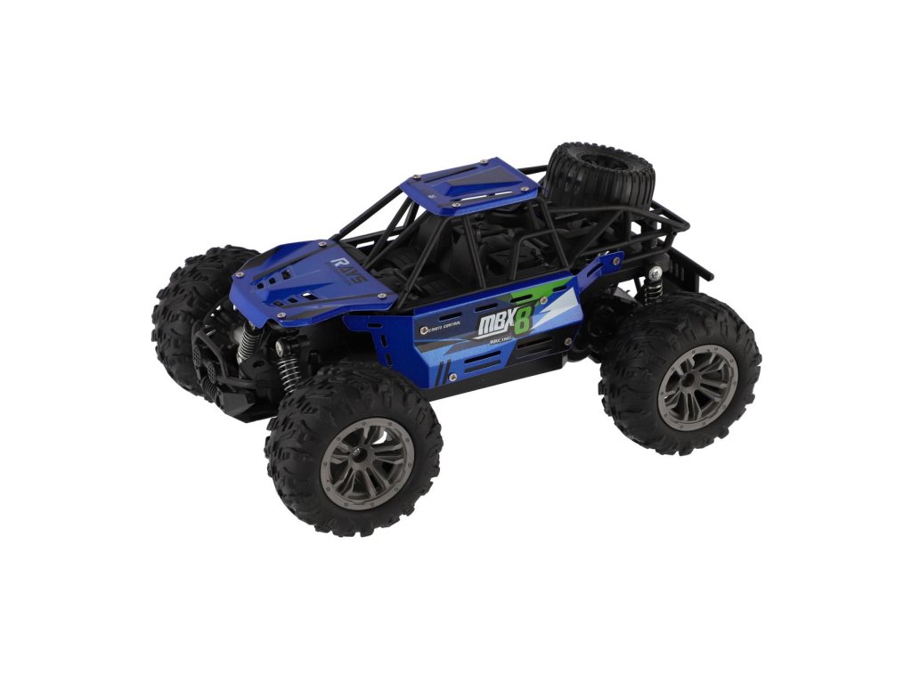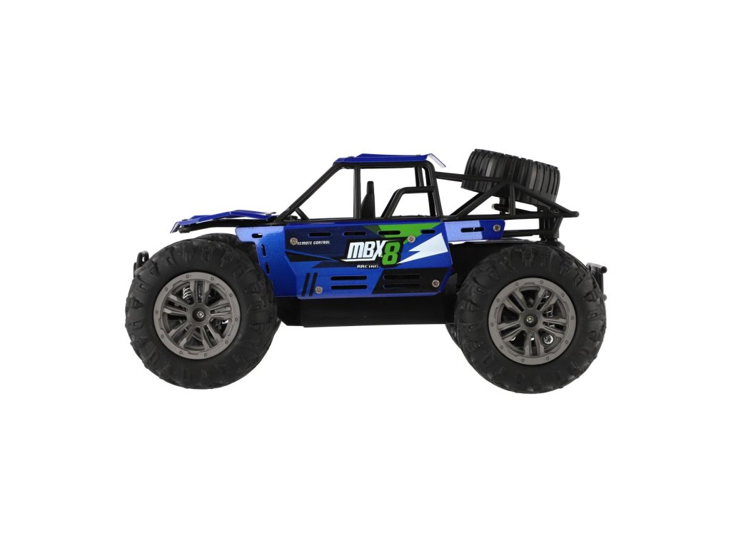 Auto RC buggy terénní modré 22cm plast 2,4GHz na baterie + dobíjecí pack v krabici 32x16x18cm