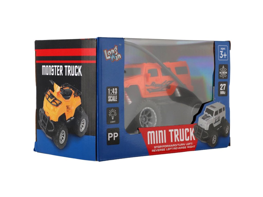 Závodní zážitek v mini formátu! Tento RC mini truck v oranžové barvě přináší spoustu zábavy. Funguje na frekvenci 27MHz. Ideální auto na závody v interéru i venku. Auto na baterie 4 x AA, které nejsou součástí balení.Velikost auta: 12 cm