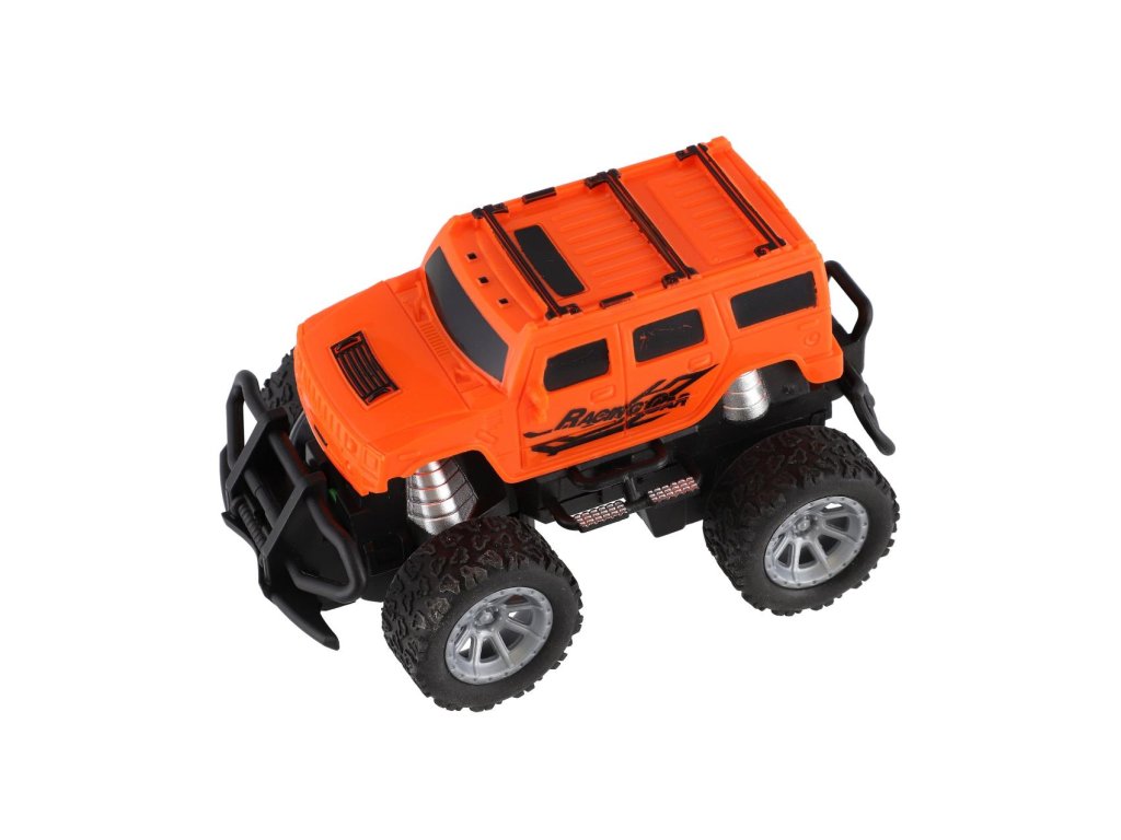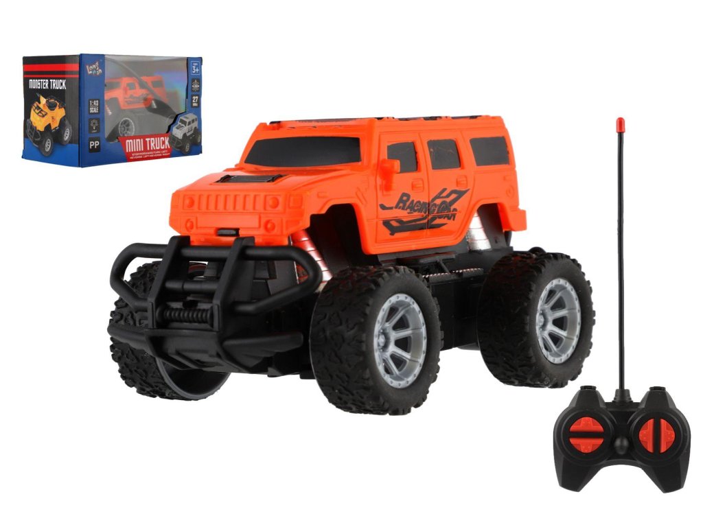 Auto RC mini truck plast 12cm 27MHz na baterie se světlem oranžové v krabici 18x11,5x10cm