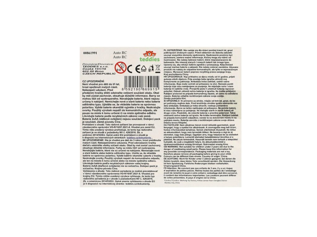 Krásné auto na dálkové ovládání, pro všechny malé závodníky, kteří milují dobrodružství a rychlou jízdu. S tímto super teréňákem budeš zaručeně v cíli jako první! Nastartuj a jeď si pro vítězství! To je rychlost! Hlavně ať se závod obejde bez nehod! Přepínač ON/OFF ze spodní strany auta. USB pro nabíjení auta, 2x AA baterie nejsou součástí balení (ovladač). Frenkvence 27 MHz.Rozměry balení 32 x 16 x 18 cm.