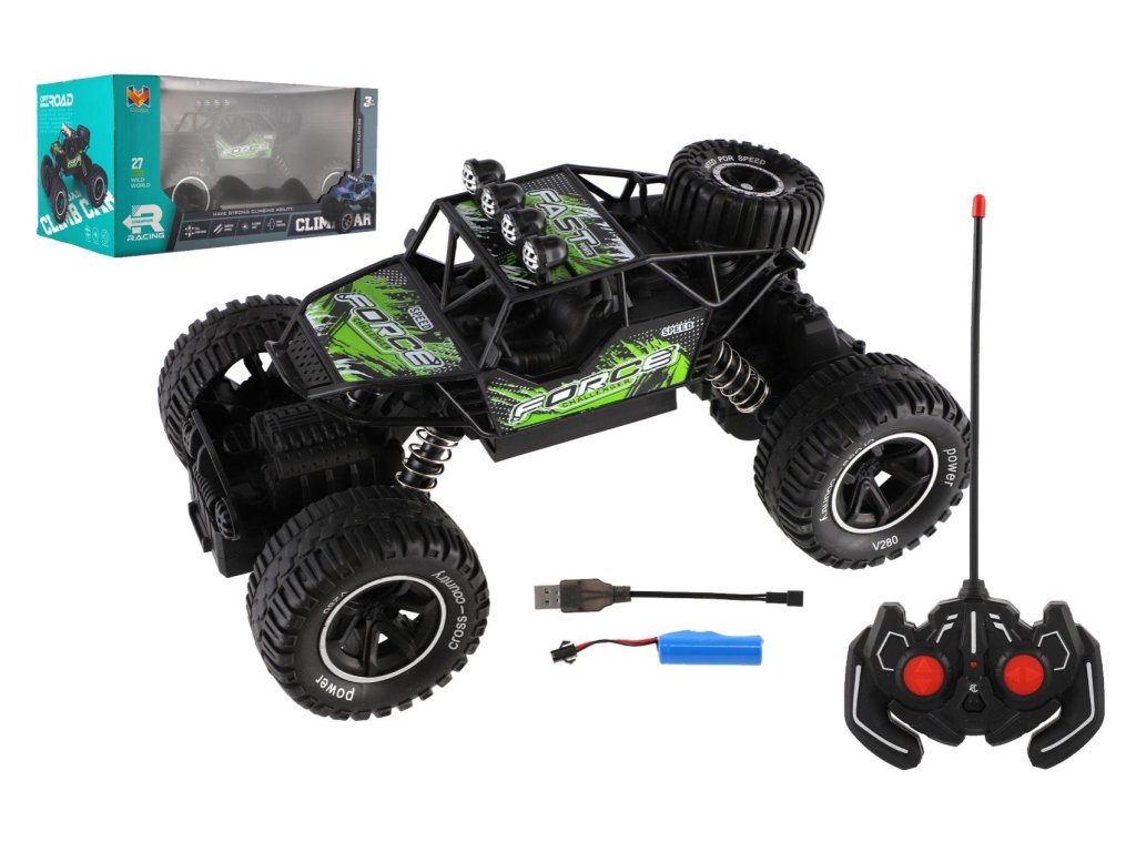 Auto RC Off-Road plast 26cm 27MHz dobíjecí pack+baterie se světlem zelené v krabici