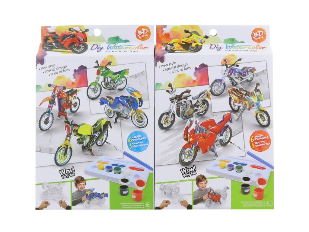 Sada 3D kartonových malovacích motorek. Balení obsahuje 6 barev, štětec a paletu. Rozměry balení cca 17 x 26,5 x 3,5 cm. Věk 6+Doplňkové parametry