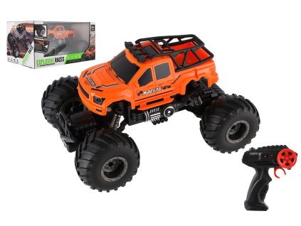 Auto RC pick up Off road terénní plast 23cm 2,4GHZ na baterie se světlem oranžový v krab. 30x15x19cm