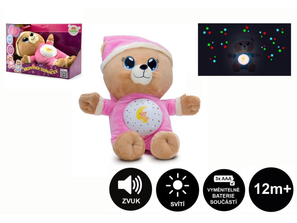 Medvídek Usínáček růžový plyš 32cm na baterie se světlem a zvukem v boxu 12m+