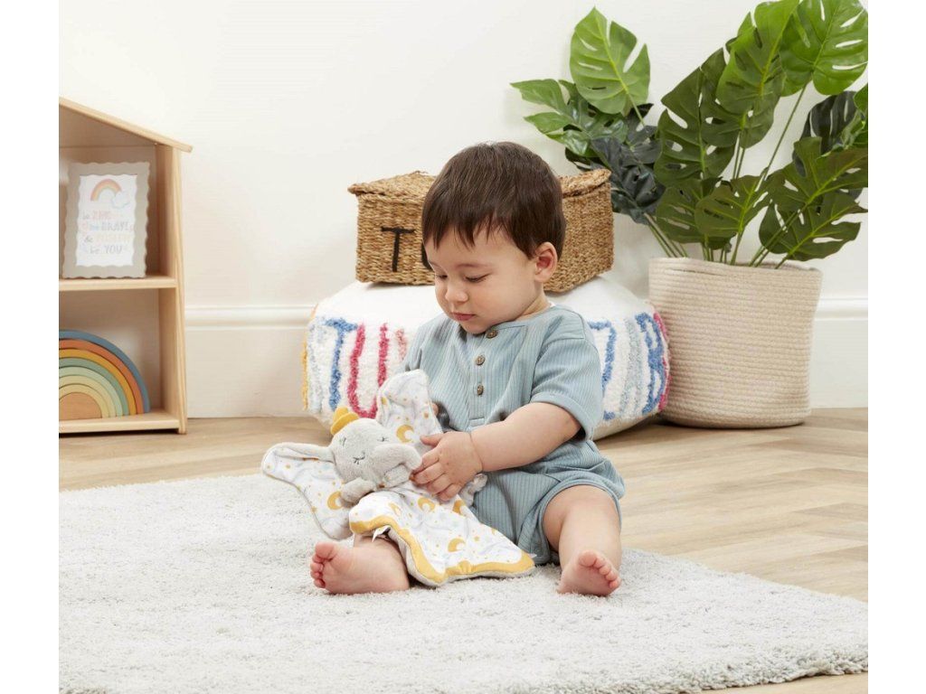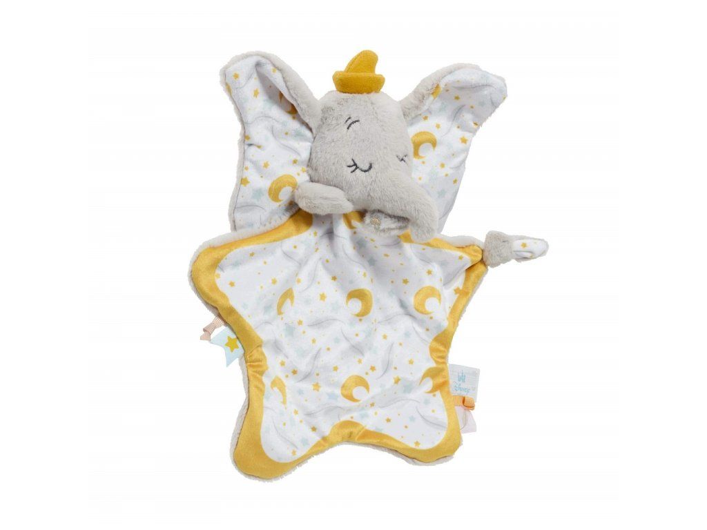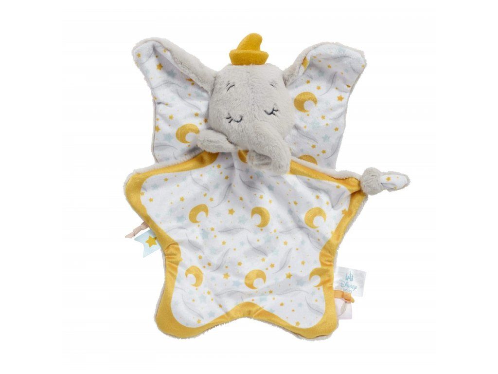 Mazlení je prostě ještě kouzelnější! Objevte Disneyho kouzelný svět s tímto komfortním muchláčkem slona Dumba. Muchláček s uzlíčkem je měkoučký na dotek. Je vyrobený z nejjemnějšího plyše, je snadno uchopitelný, přenositelný a ideální k objetí kdykoliv – při nočním spánku, odpolední zdřímnutí nebo na cestách. Roztomilý hvězdičkový design a jemné, uklidňující tóny dodávají hravý nádech, čímž se stává kouzelným doplňkem každé dětské postýlky.