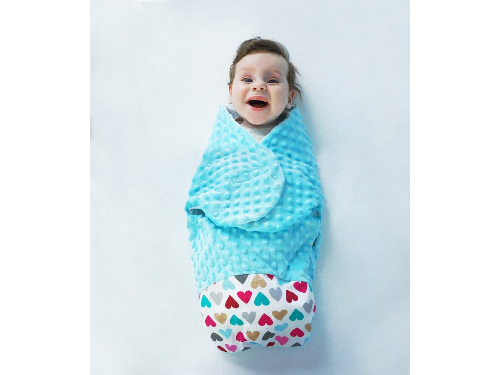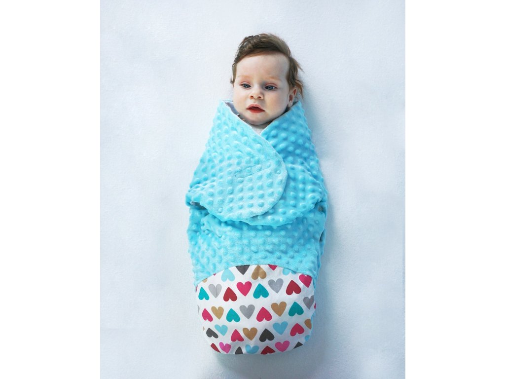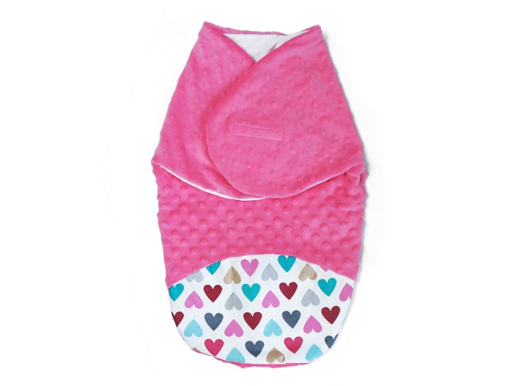 Baby Nellys Zavinovačka, spacáček s minky, 0-6m - Srdíčka, minky růžová