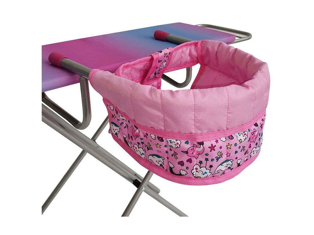 Tato krásná jídelní židlička pro panenky v růžové barvě s kouzelnými motivy jednorožců potěší všechny malé milovnice hraní s panenkami.