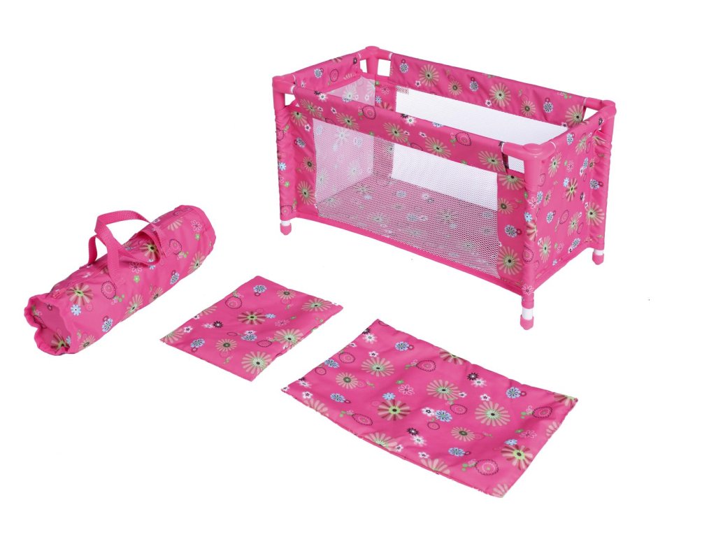 Cestovní postýlku s průhlednými bočnicemi je možné složit do tašky. V postýlce nechybí polštářek a dečka.Velikost: 53 x 32 x 32 cm.