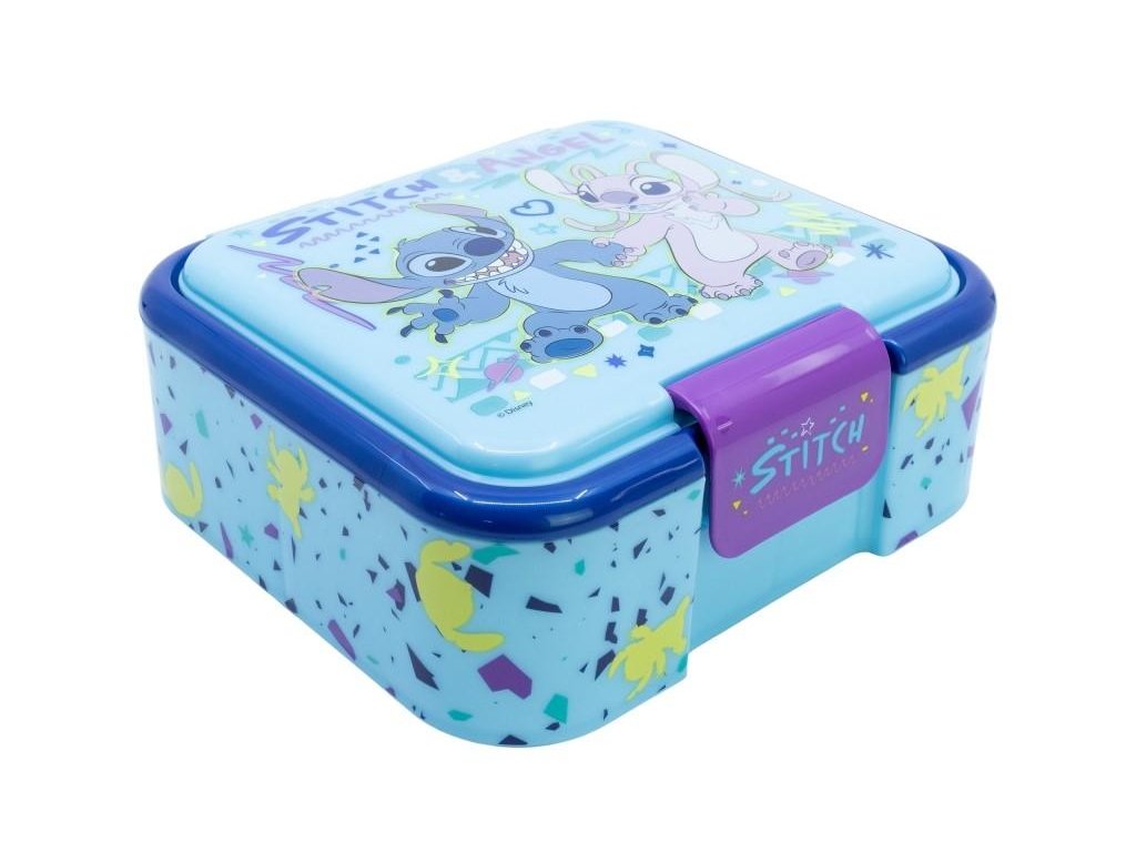 Multi box na svačinu s motivem Stitch. Vnitřní část rozdělena na 3 části. Materiál: plast. Rozměry: 18 x 16 x 6,2 cm. Hmotnost: 205 gr. Bez BPA, zdravotně nezávadný. Výrobce: Stor.