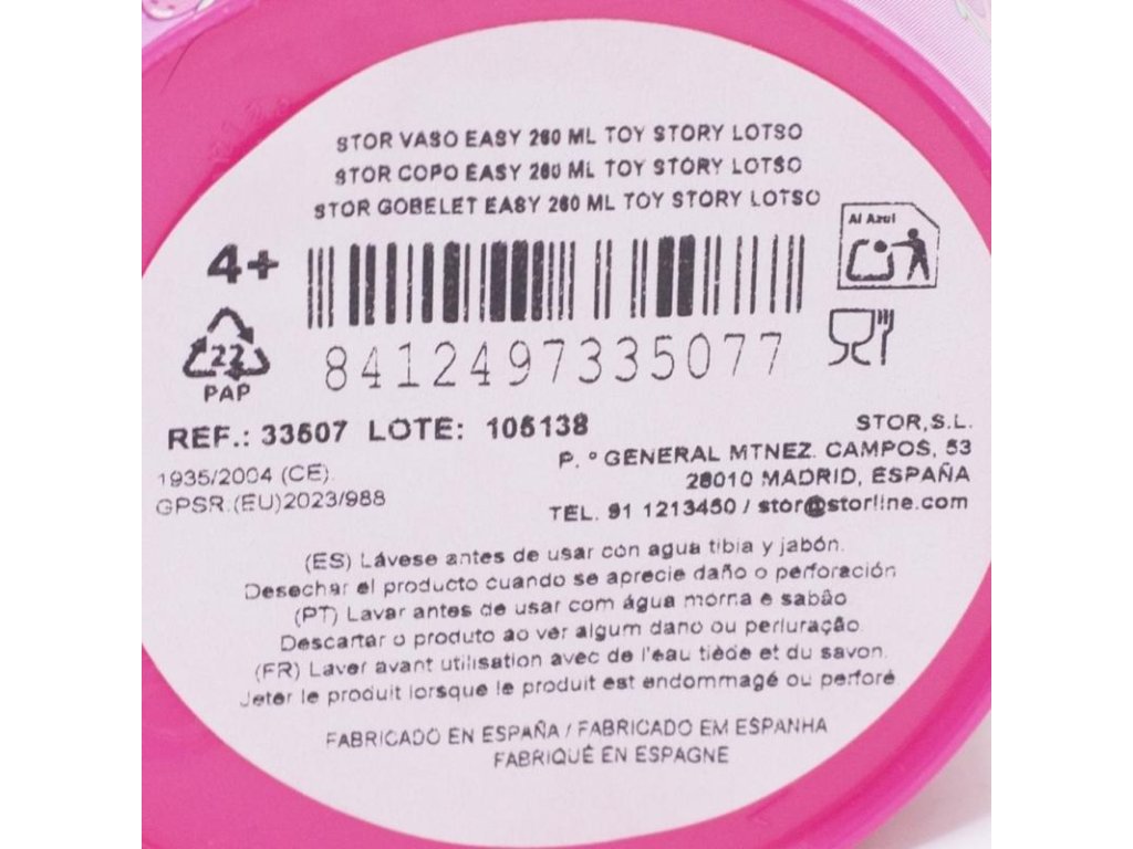 Rozměry: 9,7 x 7,6 cm. Objem: 260 ml. Materiál: plast. Nevhodné do mikrovlnné trouby. Pro děti od 4 let. Výrobce: Stor. Stor, S.L.P. General Martínez Campos 5328010 Madrid, Spain info@storline.comDoplňkové parametry