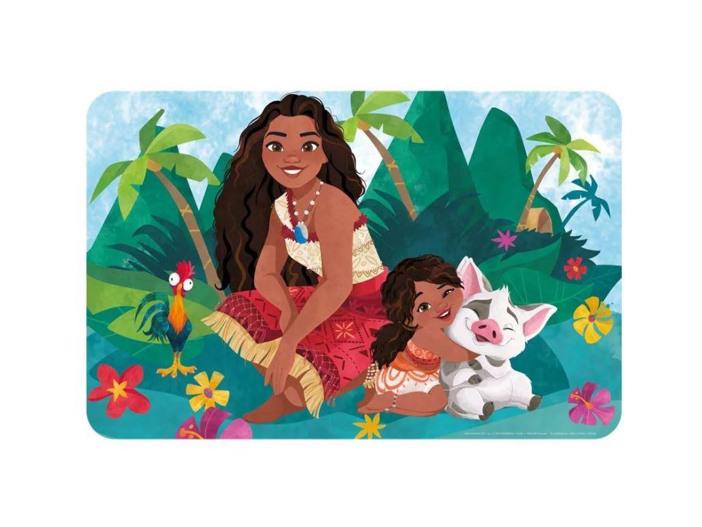 Podložka na stůl s motivem Vaiana. Rozměry: 43 x 28 cm. Materiál: 100% PVC. Slouží jako jídelní podložka nebo ochrana stolu při psaní, malování či hraní. Chrání povrch stolu před poškrábáním, nečistotami a skvrnami. Je vyrobena z lehce omyvatelného plastu, konkrétně 100% PVC. Rozměry se pohybují kolem 43 x 28,5 cm. Je vhodná pro děti od 3 let. Výrobce: WO products 6900 Zevenar Nizozemí info@wo-products.nlDoplňkové parametry