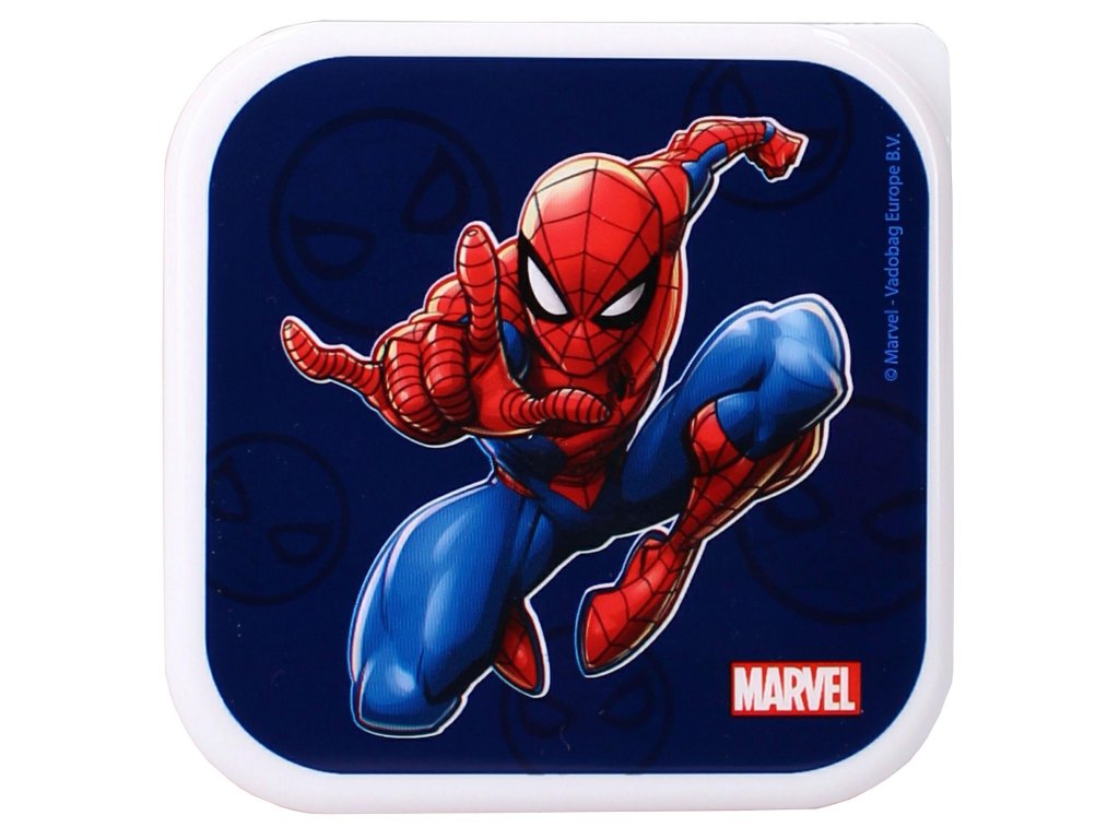 Svačinové boxy s motivem Spidermana. Jedná se o sadu tří svačinových boxů různých velikostí. Boxy jsou ideální pro přenášení svačiny do školy, na výlety nebo volnočasové aktivity. Jsou zdobeny oblíbeným motivem Spidermana. Boxy jsou praktické a snadno se čistí. Materiál: plast. Rozměry: 11.8, 10.7, 5.5 cm, viz detailní foto. Bez BPA, zdravotně nezávadné. Výrobce: Vadobag. Vadobag Europe B.V.Technopol 335026 SB Tilburg, Holandia salessupport@vadobag.nlDoplňkové parametry