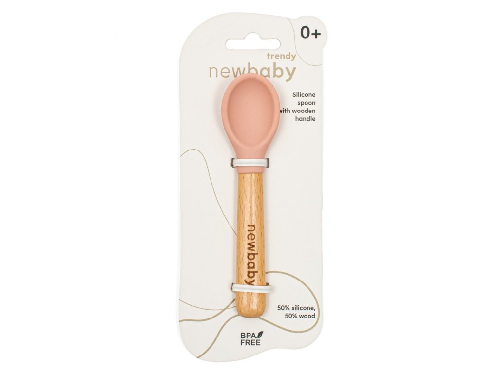 Dětská lžička z řady New Baby Trendy spojuje moderní design s praktičností. Kombinace dřevěné rukojeti s elegantním gravírováním loga značky a nejkvalitnějšího silikonu bez BPA zaručuje bezpečnost a komfort při krmení vašeho miminka.
