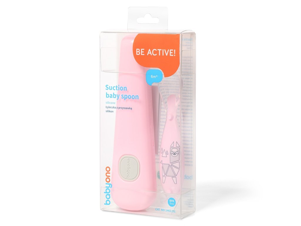 Silikonová lžička široká s přísavkou v pouzdře - růžová