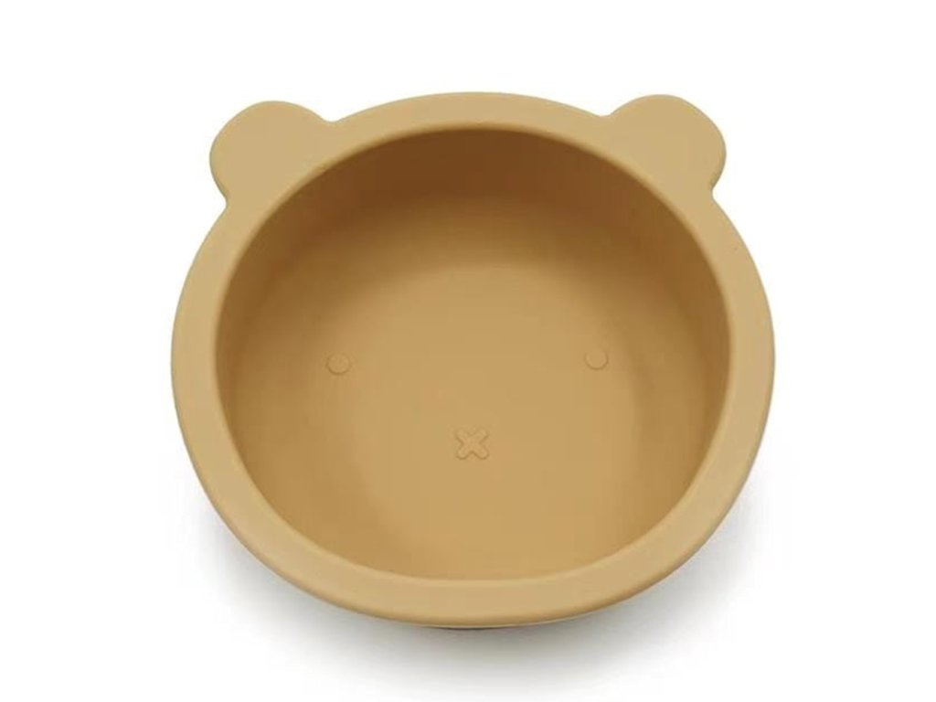 Silikonová miska s přísavkou Medvídek, průměr 12 cm - hořčicová
