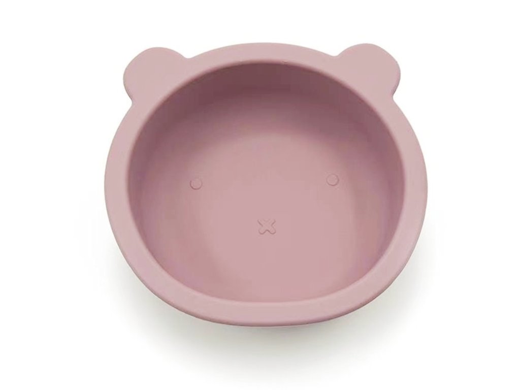 Silikonová miska s přísavkou Medvídek, průměr 12 cm - růžová