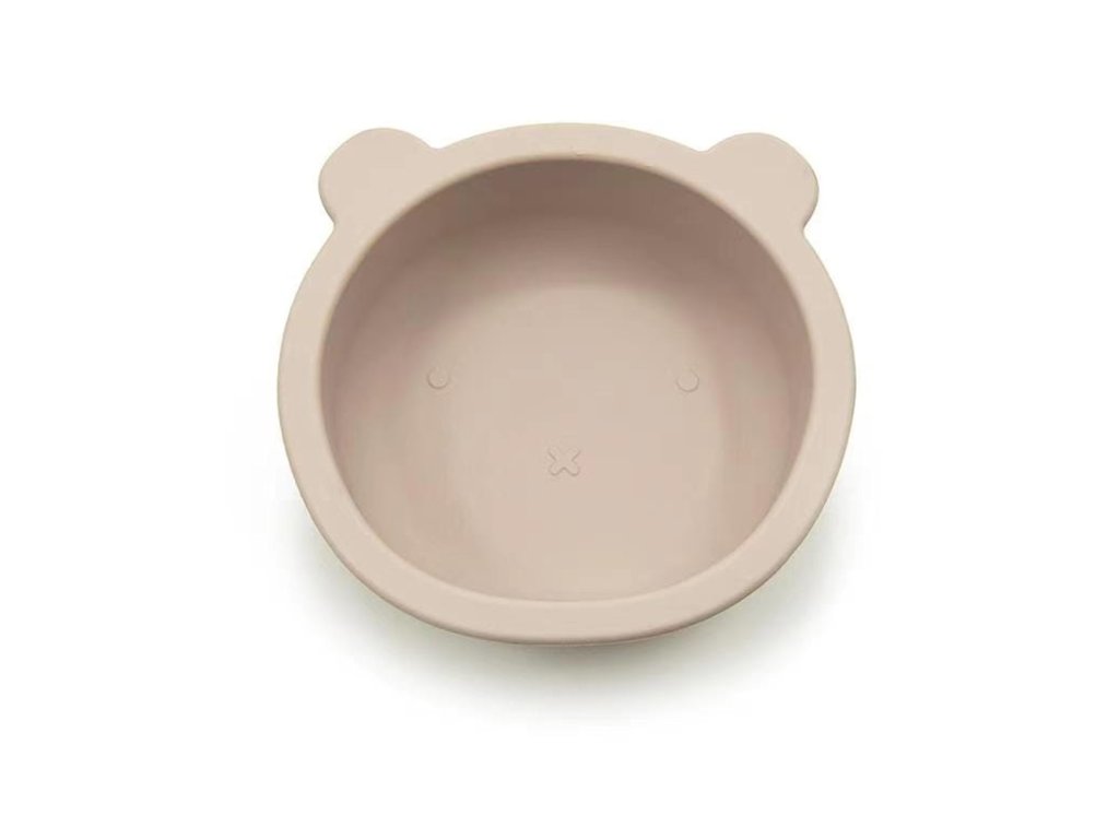 Silikonová miska s přísavkou Medvídek, průměr 12 cm - světle béžová