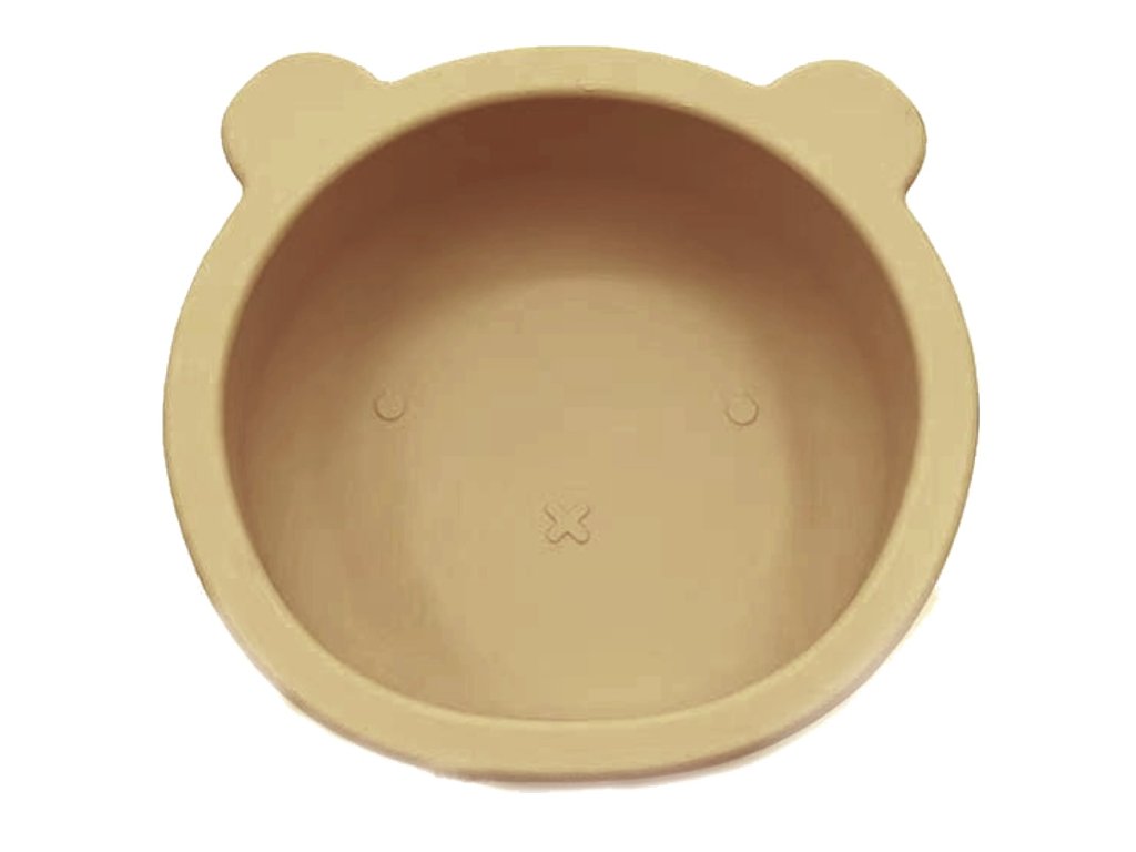 Silikonová miska s přísavkou Medvídek, průměr 12 cm - tmavě béžová