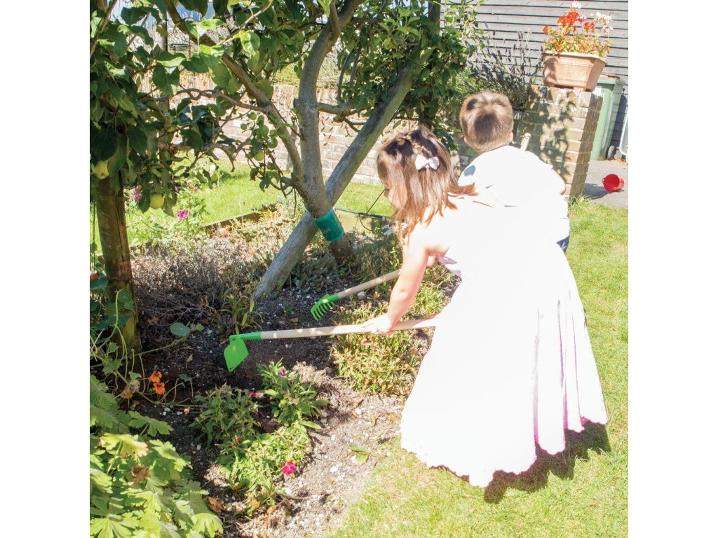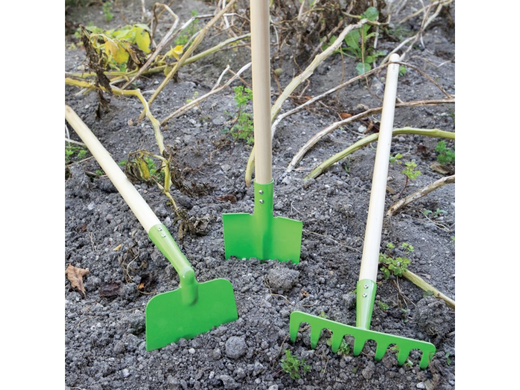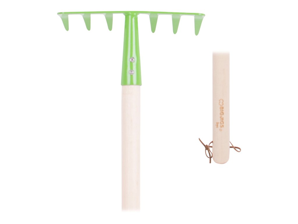 Malí zahradníci si zamilují robustní zahradnické hrábě zelené s dlouhou rukojetí. Ideální při práci na zahradě s mámou a tátou. Zahradní doplňky dostupné v zahradnickém sortimentu Bigjigs Toys zahrnují zahradnický pás, tašku s nářadím, zahradnické rukavice, nářadí s dlouhou rukojetí, konve, kbelíky, ruční nářadí a zástěru.