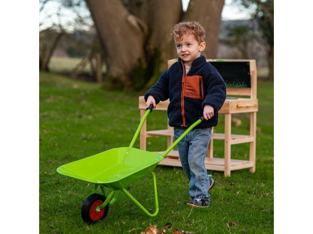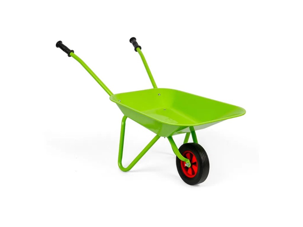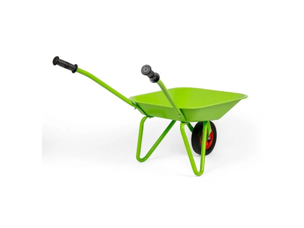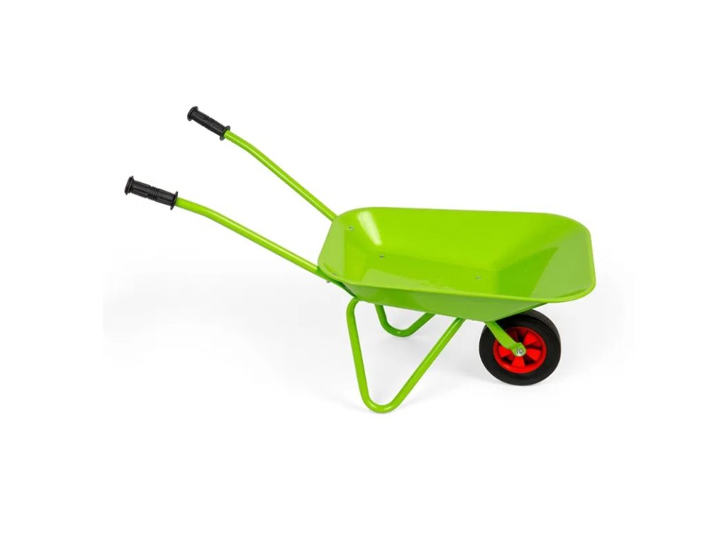 Šikovná děvčátka i chlapci jistě rádi pomohou s různými pracemi na zahradě, když budou mít k dispozici svoje vlastní zahradní kolečko! Ať už budou převážet květiny, zeminu nebo své oblíbené plyšáky, veselé zelené kolečko je připraveno vyrazit do akce. Kolečko je navrženo tak, aby vydrželo roky hraní venku, má robustní gumové kolo a dvě snadno uchopitelné rukojeti vhodné pro malé dětské ruce. Zahradničení a péče o květiny v dětech podporuje pocit zodpovědnosti a přináší jim radost z práce a pomoci ostatním. Zahradní kolečko je součástí řady barevných hraček na zahradu. Je vyrobeno z prvotřídních materiálů a barveno netoxickými barvami a laky. Splňuje aktuální evropské bezpečnostní normy.