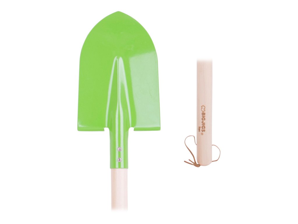 Malí zahradníci si zamilují robustní zahradní lopatku s dlouhou rukojetí. Ideální při práci na zahradě s mámou a tátou. Zahradní doplňky dostupné v zahradnickém sortimentu Bigjigs Toys zahrnují zahradnický pás, tašku s nářadím, zahradnické rukavice, nářadí s dlouhou rukojetí, konve, kbelíky, ruční nářadí a zástěru.