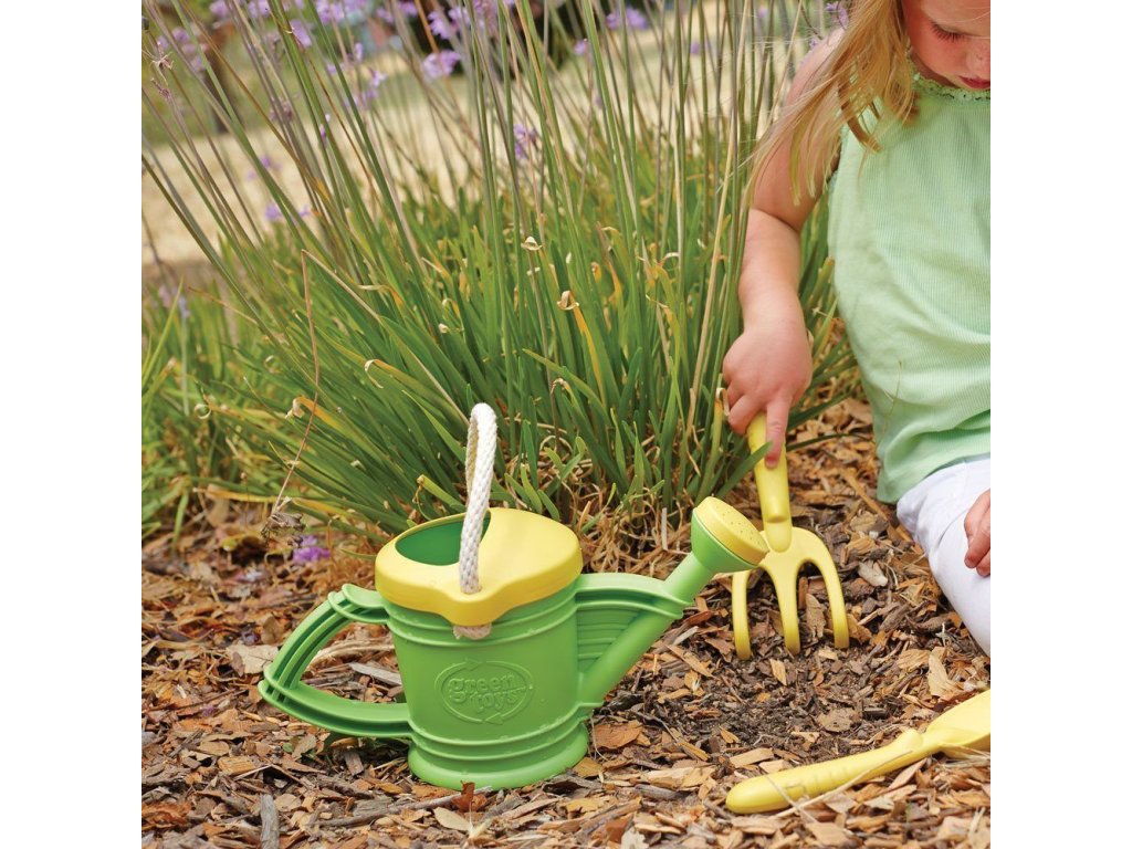 Pokud hledáte plastové hračky na písek nebo do vody a při tom vám velmi záleží na bezpečnosti vašich dětí, nabízíme vám americkou značku ekologických hraček Green toys, která je populární nejen v Americe, ale se svými výrobky sklízí neuvěřitelné úspěchy po celém světě. Green toys, to je především odpovědná výroba hraček z recyklovaného plastu láhví od mléka. Perfektní na zahradu i k moři. Konvička Green Toys s nářadím je klasickým setem, který děti podporuje k tomu, aby se staraly o svět kolem sebe. Konev má svrchní otvor, do kterého lze lehce nalít vodu a balvněnou rukojeť, s kterou lze konvičku jednoduše přenášet. Skvělá hračka, s kterou můžete společně s dětmi trávit čas venku. Děti budou rády, že mohou rodičům pomoci s pěstováním na zahradě. Zábavu si s touto konvičkou mohou užít i při koupání ve vaně. Balení obsahuje tři hrací díly. Skvělé pro podporu kreativního a nápaditého hraní. Možno mýt v myčce. Hlavní vlastnosti: bezpečný materiál pro děti, který neobsahuje PVC, bisfenol ani ftalátyvyroben z recyklovaného plastu láhví od mlékapevný a hladký materiáloriginální designobal je 100% ekologický a recyklovatelnýDoplňkové parametry