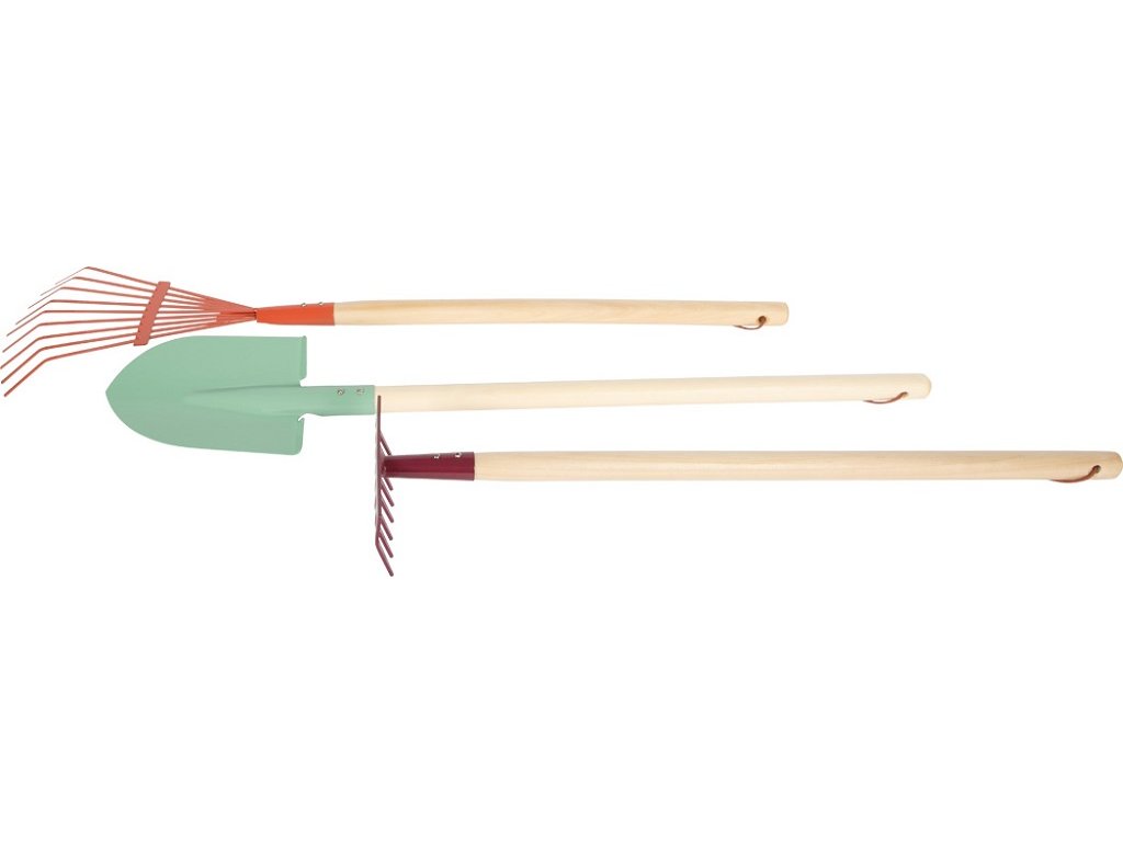 S touto čtyřdílnou sadou zahradního nářadí „Tiny Garden“ a stylovou konvičkou můžete vyrazit do akce – ať už na zahradu, do pískoviště nebo na pláž! Sada obsahuje hrábě, rýč, hrábě na listí a konvičku s praktickým rozprašovačem. Nářadí je vyrobeno z odolných materiálů a má ideální velikost do dětských ručiček. A až bude práce hotová? Díky poutkům na konci násad ho jednoduše zavěsíte a je uklizeno.