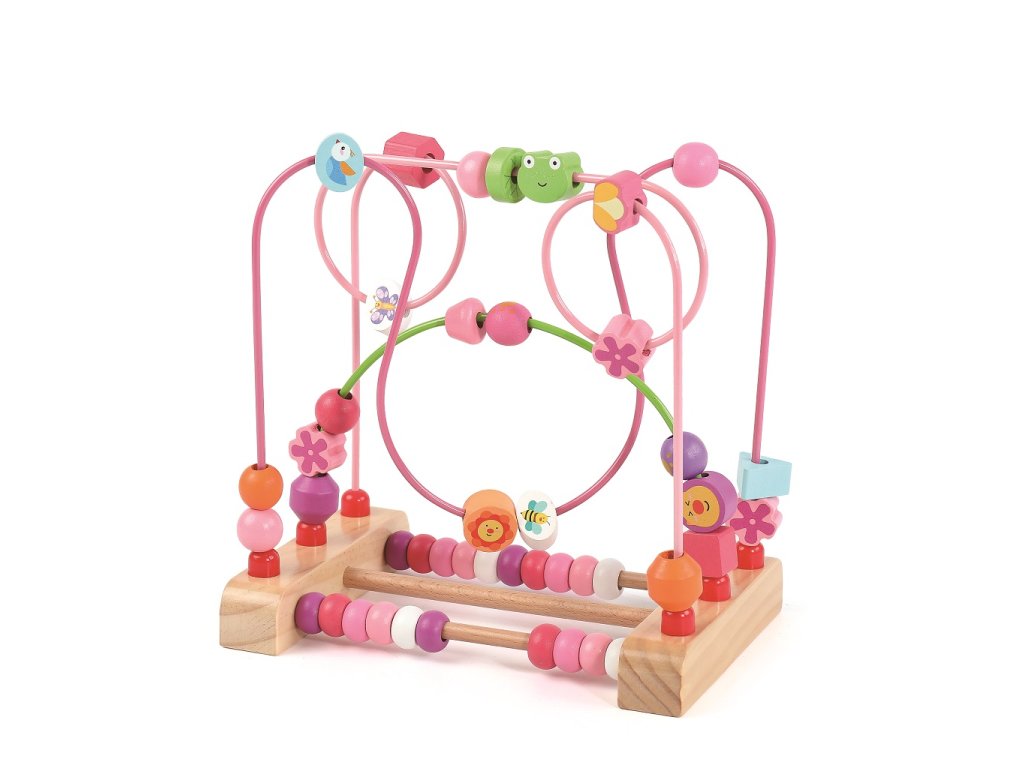 Labyrint na dřevěném podkladu pomáhá dětem nejen se seznamovat s barvami, ale především trénovat jemnou motoriku při posouvání korálků. Díky dostatečnému množství těchto rozmanitých korálků, mezi kterými najdete roztomilé zvířecí kamarády, lze hračku využít i k edukativní hře a pomalu u naších ratolestí vytvářet pozitivní vztah k učení a počtům.