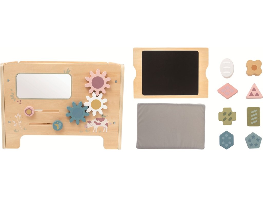 Labyrint se zvířátky, vkládací tvary, ozubená kolečka, hodiny, zrcátko… Tahle stolička je malá, ale neskutečně akční. A k tomu všemu laděná do přírodních a pastelových tónů, takže se stane i atraktivním doplňkem dětského pokoje či herny. Stolička je dodávána v nesloženém stavu. Nutná montáž dospělou osobou.