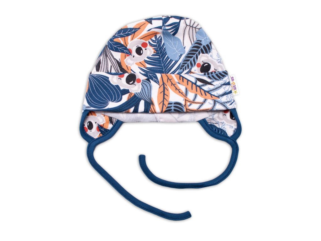 Baby Nellys Bavlněná čepička na zavazování - Jungle, granát/ecru