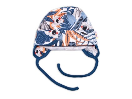 Baby Nellys Bavlněná čepička na zavazování - Jungle, granát/ecru