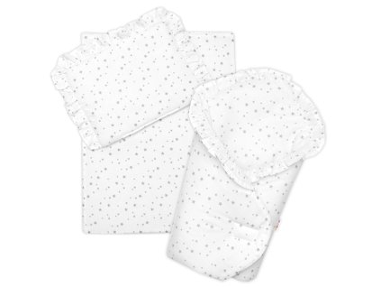 Sada pro panenku 3D - zavinovačka, peřinka a polštářek, Hvězdičky,bílá/šedá