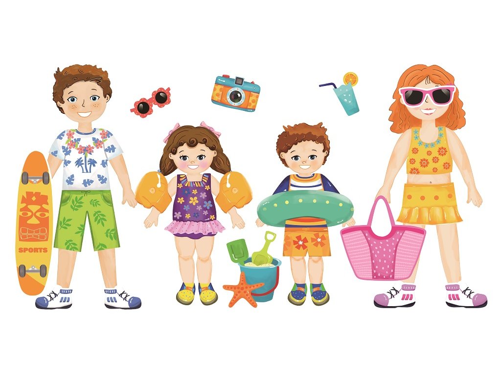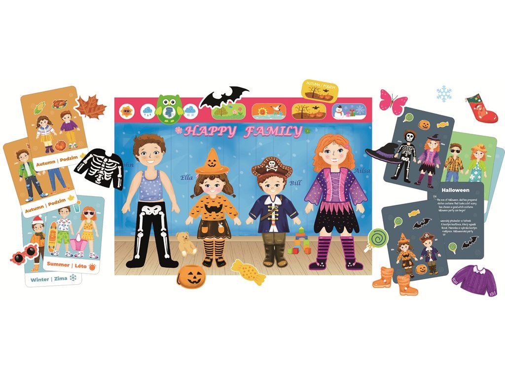 - 4 postavy k oblékání (maminka, tatínek, dcera, syn)