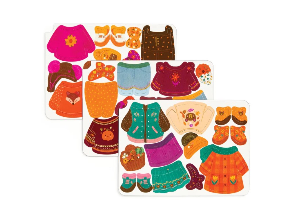 K dispozici je na 3 kartách 40 magnetů s tematickým oblečením a doplňky