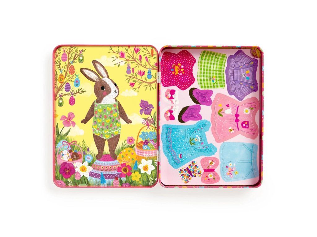 Ponořte se do světa módy s touto magnetickou sadou, která byla navržená k tomu, aby inspirovala děti ke kreativitě. Prozkoumejte svůj smysl pro styl a představivost a nakombinujte nespočet módních outfitů dle své vlastní fantazie. Hra obsahuje 2 ilustrované scény na pozadí, v jedné části je zajíc, ve druhé králík, a oba čekají na své oblékání. K dispozici je na 3 kartách více než 40 magnetů s pestrobarevným oblečením a doplňky. Kombinujte vše dle svých vlastních představ. Vhodné na doma i na cesty.