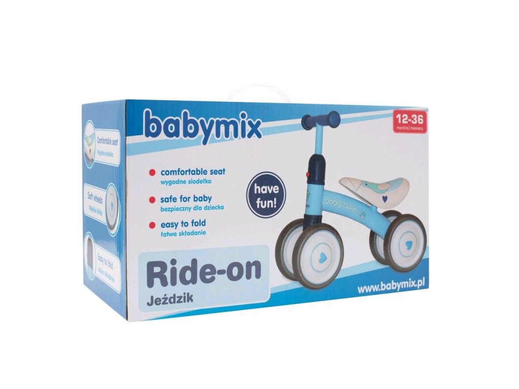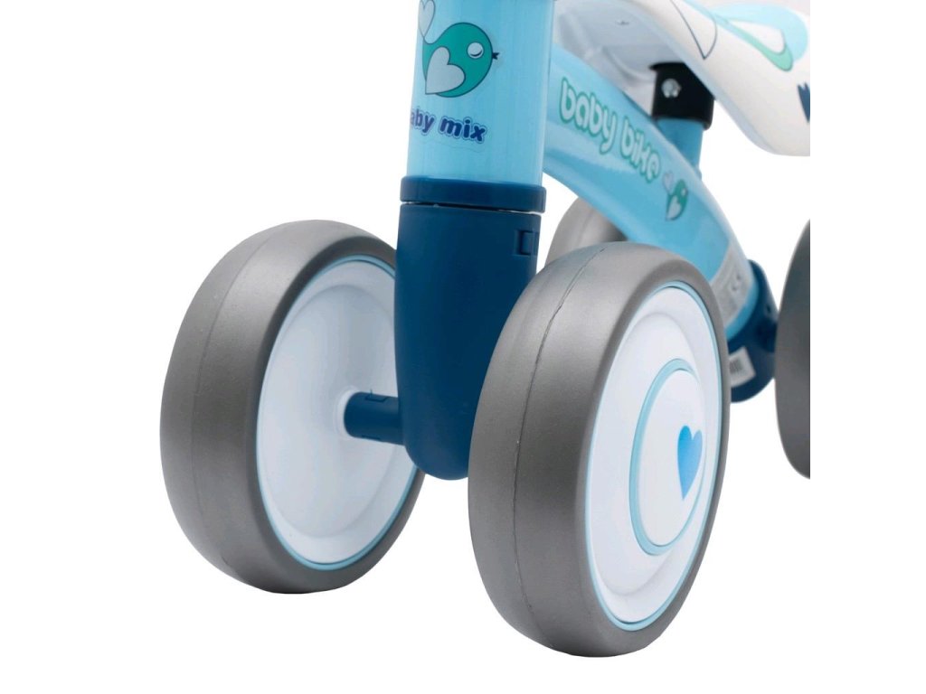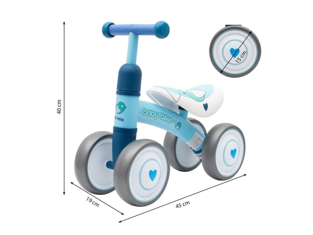 Dětské odrážedlo Baby Bike je určeno těm nejmenším závodníkům a závodnicím. Díky speciálně navrženému rámu a velmi nízké hmotnosti je Baby Bike vhodný pro děti od 1 roku. Je ideální v době, kdy se dítě učí držet rovnováhu a koordinaci pohybů celého těla. Je tou nejlepší alternativou pro kolo s bočními kolečky, protože pozdější jízda na klasickém kole bude mnohem snadnější. Díky použití dvojitých kol a pevného ocelového rámu je stabilní a bezpečné. Pěnové, ergonomicky tvarované sedadlo je ozdobeno hezkým obrázkem a je příjemně měkoučké. Baby Bike má blokádu řídítek, takže se nemusíte obávat nekontrolovaného pádu, když se váš malý sportovec začne učit manévrovat. Dvojitá pěnová kolečka skvěle absorbují nerovnosti a poskytují perfektní přilnavost na všech površích.